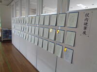 先日行われた競書会の作品が各学年のフロアに飾られ、金賞が発表されました。今年度も学年のオープン審査を行いました。金賞の枠に限りがありましたが、どの子も最初より格段に上達していました。みなさん、よくがんばりましたね!これからも丁寧に字を書いていきましょう!
