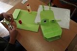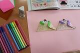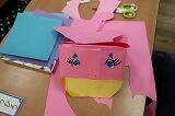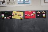 1年生は図工『』あそぼうよ、パクパクさん」という題材で、手で動かして遊ぶおもちゃを作りました。