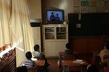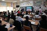 2年生と5年生の発表の映像をテレビで観たあと、全員が教室で「虹」を合唱しました。