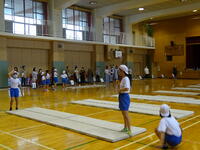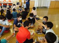 7月1日(木) 春日部市教育委員会社会教育課の方々に来ていただいて、ジャンボ「かすかべ郷土かるた」大会を行いました。体育館で広がって、走らないなどのルールを守りながらとても楽しんでいました。