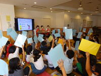 SDGsで掲げる17の目標についてクイズを入れた説明をしていただき、子供たちは気候や貧困、エネルギーなどについて世界の様子を勉強しました。