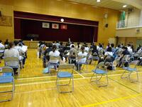 感染症対策のため、まだ体育館に全員が集まれないため、放送で行いました。