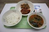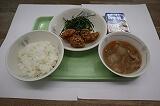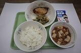 今日の献立は『ごはん・牛乳・ぶりの照り焼き・水菜のごま和え・豆腐とひき肉の煮込み』です。