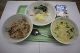 今日の献立は、『チャーハン・牛乳・ぎょうざフライ・中華サラダ・蓮花湯(レンフォアタン)』の中華料理です。