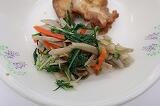 ファイバーサラダは、食物繊維たっぷりのサラダです。おなかの調子を整えてくれます。サラダに使われているのは、ごぼうと水菜です。