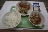 今日の献立は、『ごはん・牛乳・白身魚のカレー揚げ・小松菜のごま和え・肉じゃが』です。