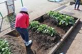 子供達は校舎内の清掃を、保護者の方々には校舎外の活動に取り組みました。どんぐり山の落ち葉掃きや花壇に球根を植える活動をお願いしました。