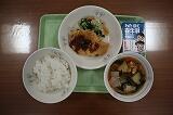 今日の献立は、『ごはん・牛乳・鶏肉のから揚げ・なすのみそ炒め・けんちん汁』です。