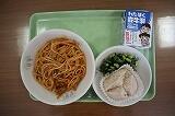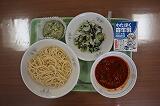 今日の献立は、『春日部野菜のボロネーゼ風パスタ・牛乳・こまちゃん蒸しパン・枝豆とひじきのサラダ』です。
