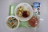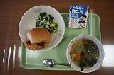 今日の給食のメニューは、『ごはん・牛乳・トンカツ・おひたし・けんちん汁』です。
