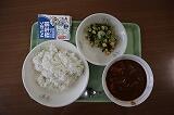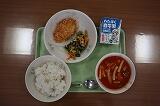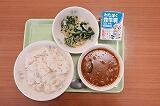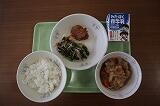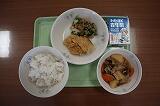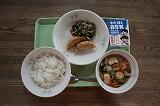 今日の献立は、『ごはん・牛乳・白身魚のカレー揚げ・小松菜のごま和え・肉じゃが』です。