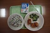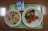 今日の献立は、『たけのこご飯・牛乳・鶏肉のから揚げ・青菜とかんぴょうの和え物』です。