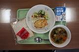 今日の献立は、『チャーハン・牛乳・ぎょうざフライ・中華サラダ・蓮花湯(レンフォアタン)』の中華料理です。