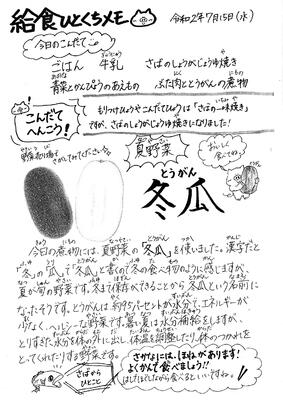 暑い、おいしい給食を作ってくださって、いつもありがとうございます。