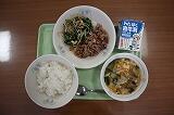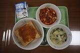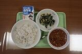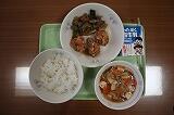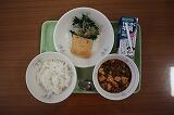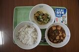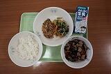 今日の献立は、『マーボー丼・牛乳・チンゲンサイの炒め物』です。