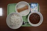 今日の献立は、『ジャージャー丼(ごはんと肉みそ)・牛乳・春巻き』です。
