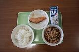 今日の献立は、『豚丼・牛乳・さけの幽庵焼き』です。