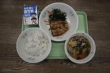 今日の献立は、『ごはん・牛乳・サバの生姜醤油焼き・青菜とかんぴょうのあえ物・豚肉と冬瓜の煮物』です。