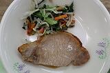 今日の給食の献立は、ごはん・牛乳・豚汁・鉄骨サラダ・サケの雑穀揚げです。 サケの雑穀揚げは、パン粉に粟を混ぜで揚げたもので、パン粉のサクサク感と粟のプチプチ感が味わえ、おいしくいただきました。