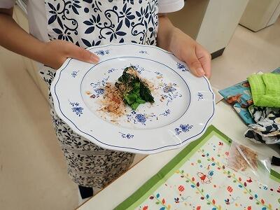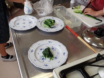 内容は先に行った1組と同じ、青菜のおひたしです。