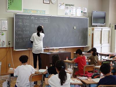 5年生は算数。こども達はそれぞれの先生の教室で学びを深めていきます。