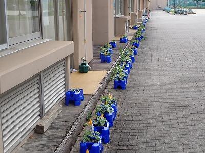 外に並べられている1・2・3年生が育ている植物の様子はどうでしょうか。