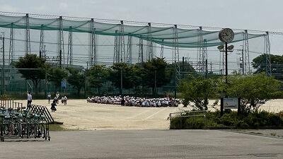 選手代表の誓いの言葉に続き、全校全員でエールを送りました。