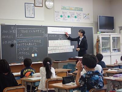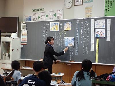 教育実習生を担当している1組では、実習生による教壇実習が始まっています。