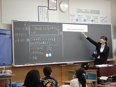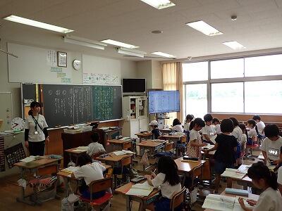 同じ時間2組も算数。今日は担任が機関研修のため、後補充の先生がこども達の授業を進めます。