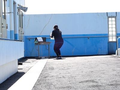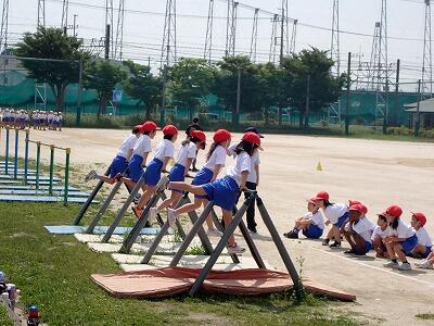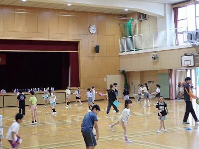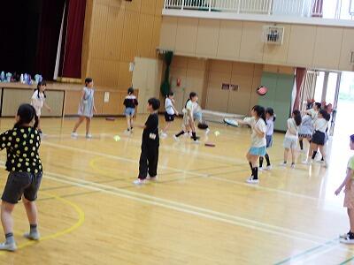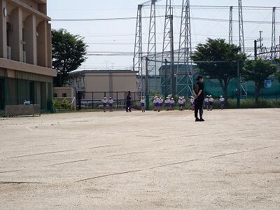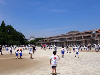 6月は体育館では握力・反復横とび、校庭では50m走の測定をします。