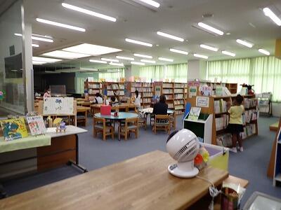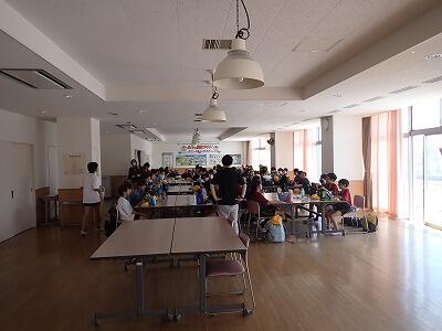 見学児童が過ごす図書室では、水泳見守りボランティアの皆さまにお世話になります。