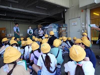 給食を担当する栄養士の先生のお話を聞き、さやむき体験スタート。