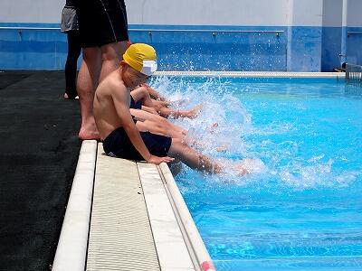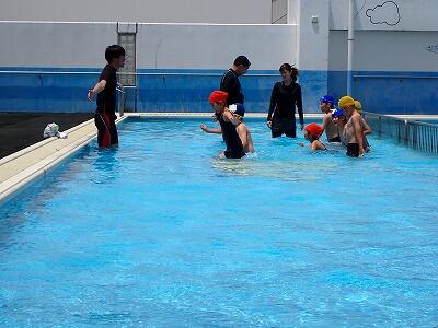 その後はお待ちかねのプールへ。水慣れの仕方も、先生と確認し入ります。