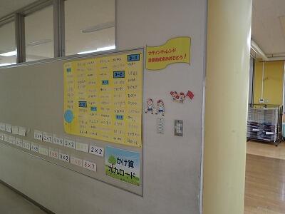 2年生廊下には、マラソンチャレンジ達成者のこども達が掲示されています。
