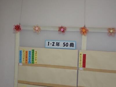 2階図書室前には、自主学習の目標を達成したこども達が掲示されています。