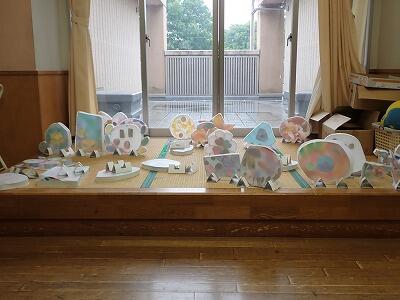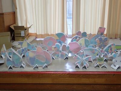 図工で作成した「光のサンドイッチ」の作品が並べられています。