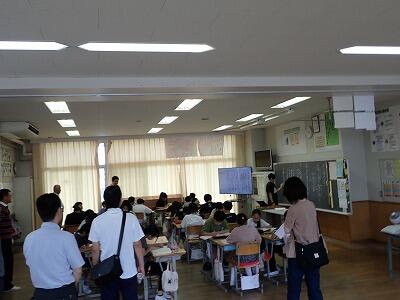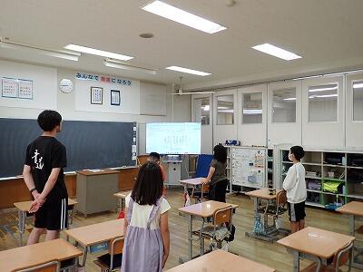 2の2は先生がオンライン研修を受講のため、職員室の先生と一緒に学習します。