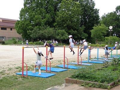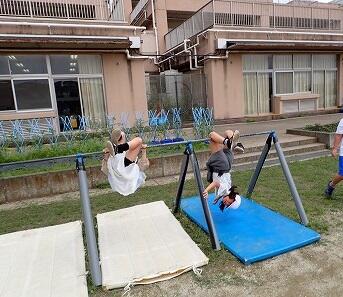 「校長先生見て!」と2年生に誘われ鉄棒へ。