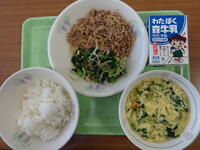 「ご飯、牛乳、かみかみ丼、おひたし、切り干し大根のみそ汁」