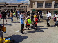 本日5時間目に避難訓練・引渡訓練を行いました。今回は大地震が起き、避難後に引き渡しをすることを想定した訓練です。