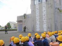 火事の時の救助訓練を見せていただきました。119番通報を自分がすることもあるので、自分の住所が言えるようにしましょう、とアドバイスをもらいました。