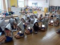 7月1日(金)に竜巻避難訓練を行いました。指示に従いシェルターを作り、竜巻が通り過ぎるのを待ちます。竜巻といえばお隣の越谷市で2013年に発生し、大きな被害をもたらしたことを覚えている方も多いと思います。竜巻などの突風被害は7月~11月に発生することが多いようです。地震や竜巻、大雨などの災害はいつ起こるかわかりません。しっかりと「自分の命は自分で守る」意識を育てていきたいと思います。