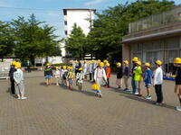 避難訓練を行う時間は伝えていなかったため、いきなりのサイレンで驚いていましたが、みんなあせらず、無言で避難することができました。
