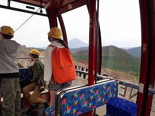 ホテルから箱根早雲山に向かい、グループごとにロープウェイに乗車。