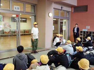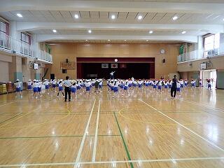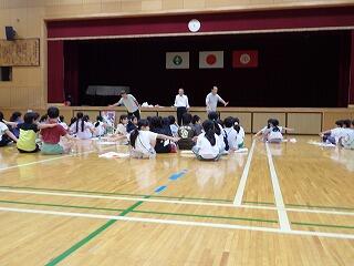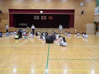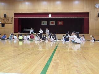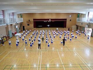 RUNRUNタイムを終えた1・2年生が体育館に集まりました。