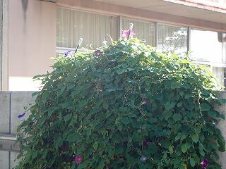 本校1年生の朝顔の鉢を見ると、花が咲いている鉢も多く見られます。