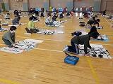 3年生は初めての書きぞめ競書会です。体育館で他の人と間隔をあけながら集中して取り組みました。静まり返った体育館で集中して取り組みました。