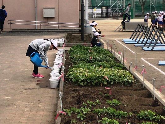 毎日、栽培委員や子どもたちが花壇や鉢植えの面倒をみています。地道な活動が春の華やかな花を咲かせます。春が待ち遠しいですね。