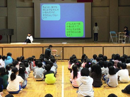 先月、武里西小学校で行われた「スーパー元気さわやか集会」の報告会がありました。代表委員の児童たちが参加して見聞きしたこと感じたことを寸劇やパワーポイントを使ってわかりやすく報告してくれました。携帯やスマホの使い方やちょっとした不注意からトラブルも起こってしまうことを学びました。
