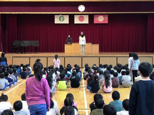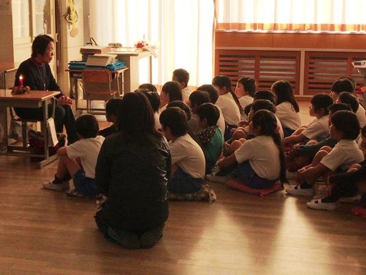 今朝は、1、2年生のお話会でした。どの子どもたちも、「春日部おはなしの会」の皆様の語りに引き込まれて、物語の世界に入っていました。「赤ずきん」や「桃太郎」など、よく知っているお話でも、感情をこめてお話を聞くと感動してしまいますね。